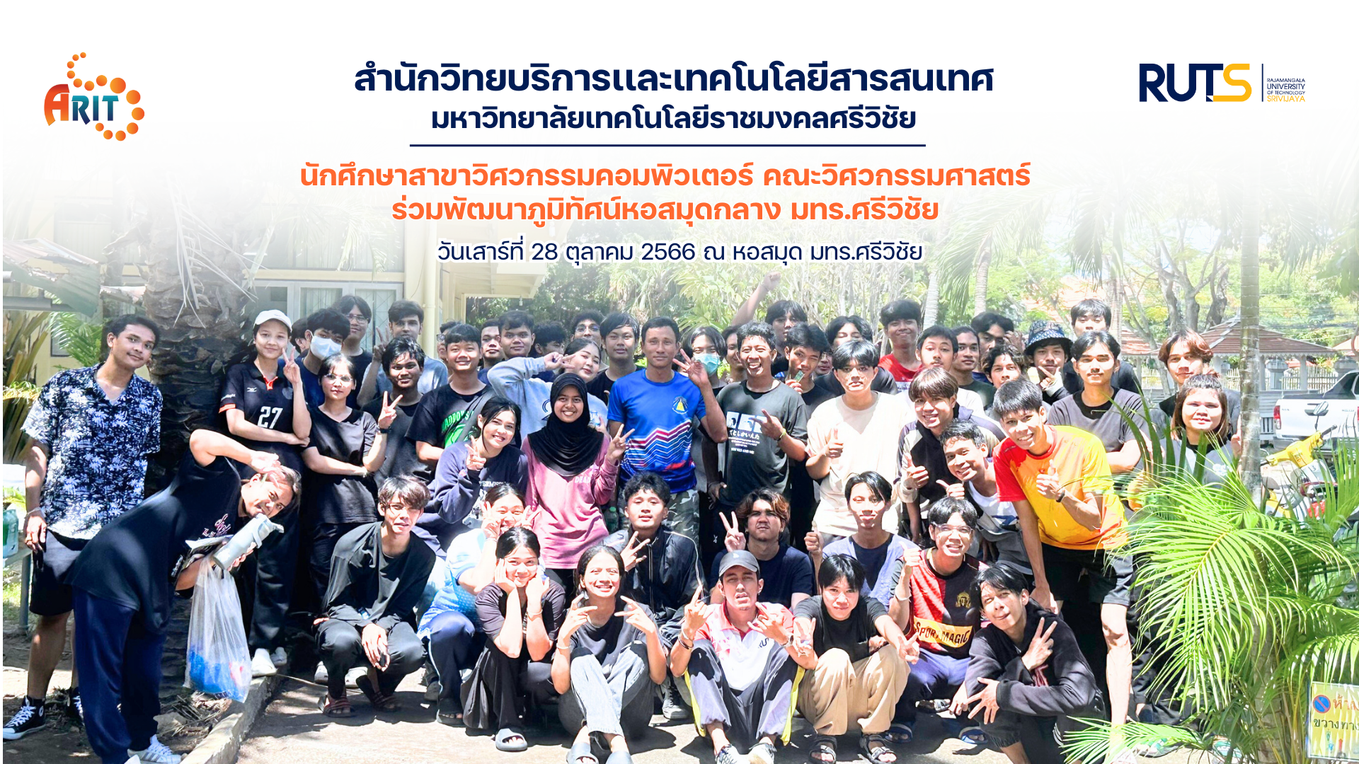วันเสาร์ที่ 28 ตุลาคม 2566 ผศ.สิทธิโชค อุ่นแก้ว ผู้อำนวยการสำนักวิทยบริการและเทคโนโลยีสารสนเทศ ร่วมกับนักศึกษาฝึกงานและนักศึกษาสาขาวิศวกรรมคอมพิวเตอร์ คณะวิศวกรรมศาสตร์ มทร.ศรีวิชัย จำนวนหลายสิบคน ร่วมแรงร่วมใจกันพัฒนาภูมิทัศน์หอสมุดกลาง มทร.ศรีวิชัย เพื่อให้เป็นสถานที่ที่การให้บริการของหอสมุดมีความสวยงามและความปลอดภัยแก่ผู้ใช้บริการหอสมุด ทำให้ภาพลักษณ์โดยรอบของหอสมุดดูสะอาดเรียบร้อย ทางสำนักวิทยบริการและเทคโนโลยีสารสนเทศต้องขอขอบคุณนักศึกษาสาขาวิศวกรรมคอมพิวเตอร์เป็นอย่างยิ่ง