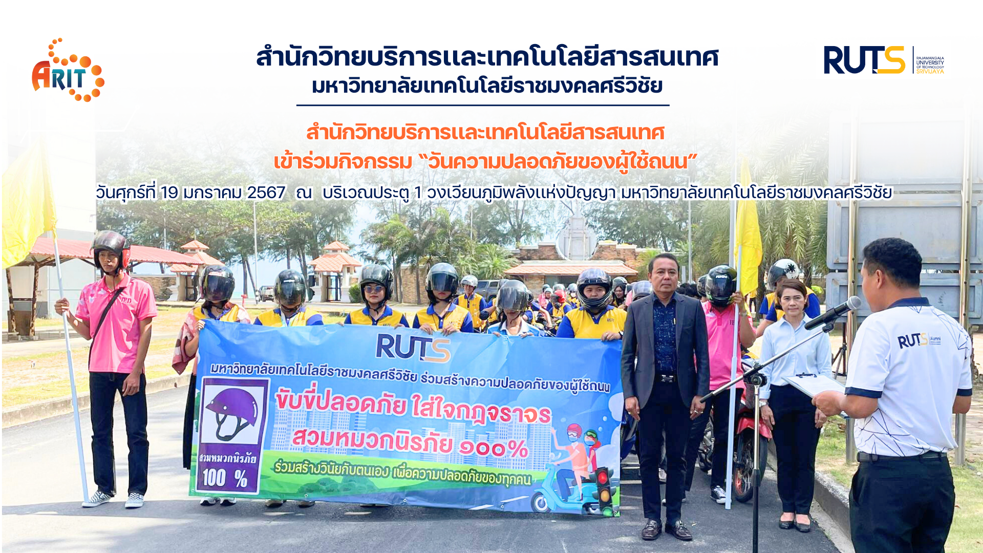 วันที่ 19 มกราคม 2567 เวลา 10.00 น. สำนักวิทยบริการเเละเทคโนโลยีสารสนเทศ เข้าร่วมกิจกรรม “วันความปลอดภัยของผู้ใช้ถนน”