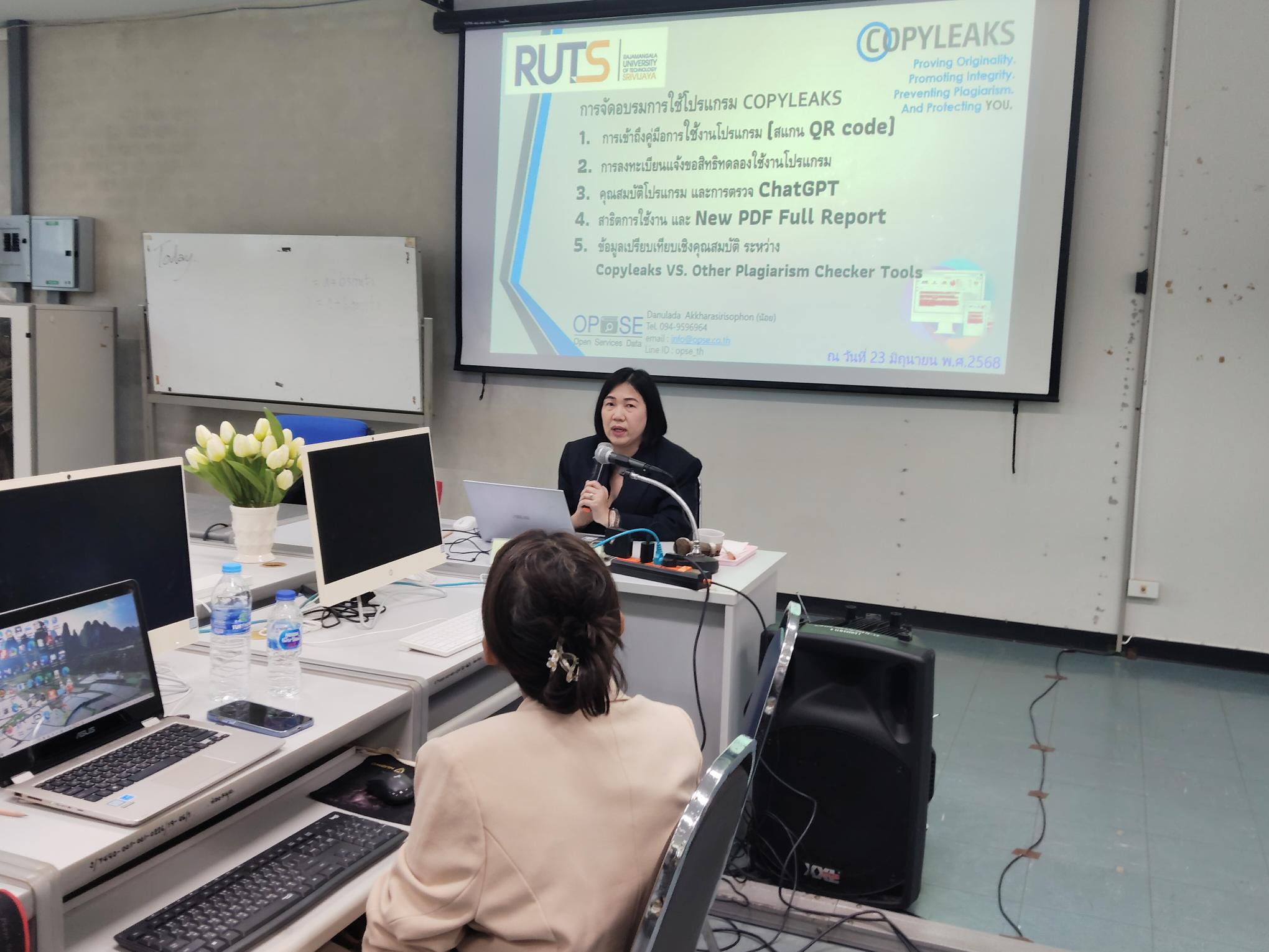 เมื่อวันที่ 23 มิถุนายน 2568 เวลา 08.30 – 16.30 น. หอสมุด มทร.ศรีวิชัย จัดโครงการอบรมระบบการสืบค้นฐานข้อมูลสารสนเทศอิเล็กทรอนิกส์ และระบบตรวจสอบการคัดลอกเอกสารทางวิชาการ ณ มทร.ศรีวิชัย วิทยาเขตตรัง