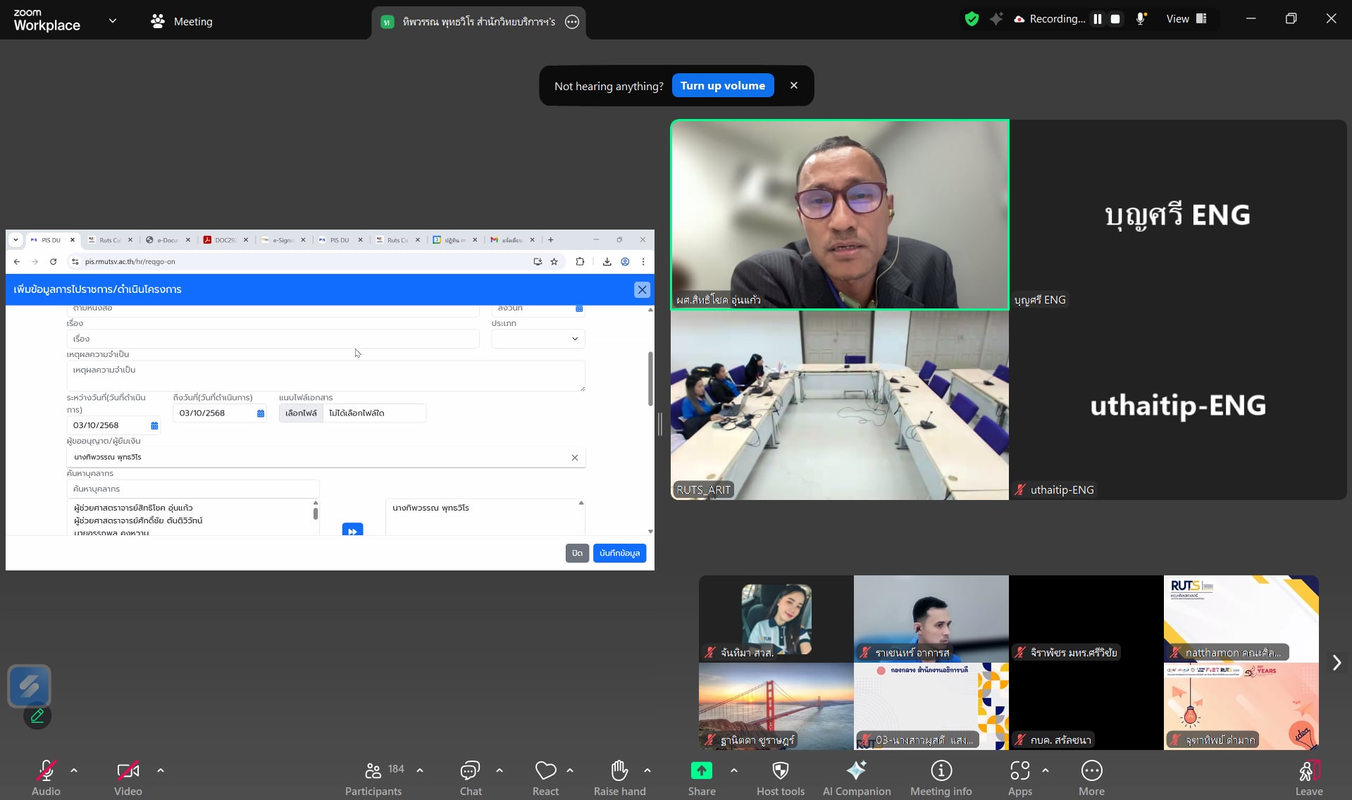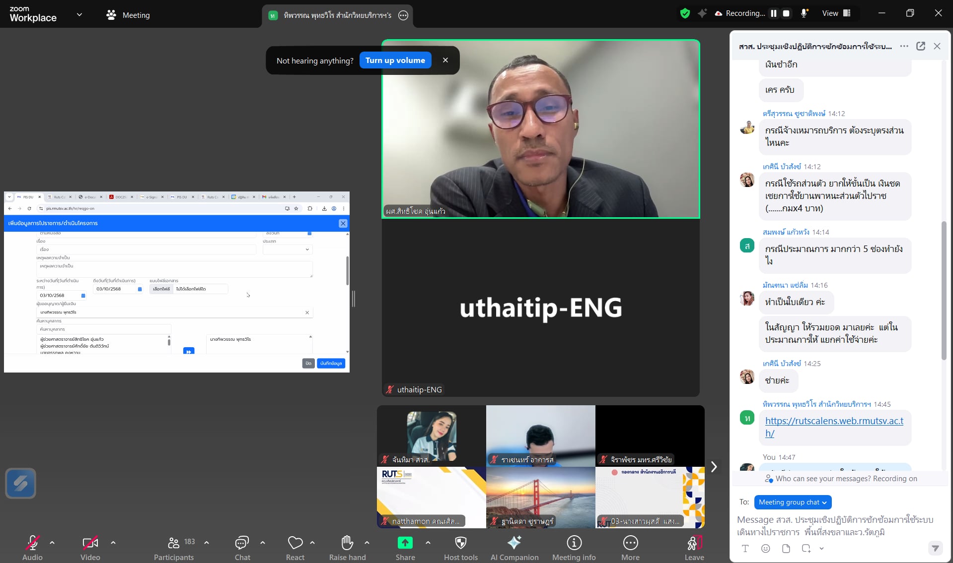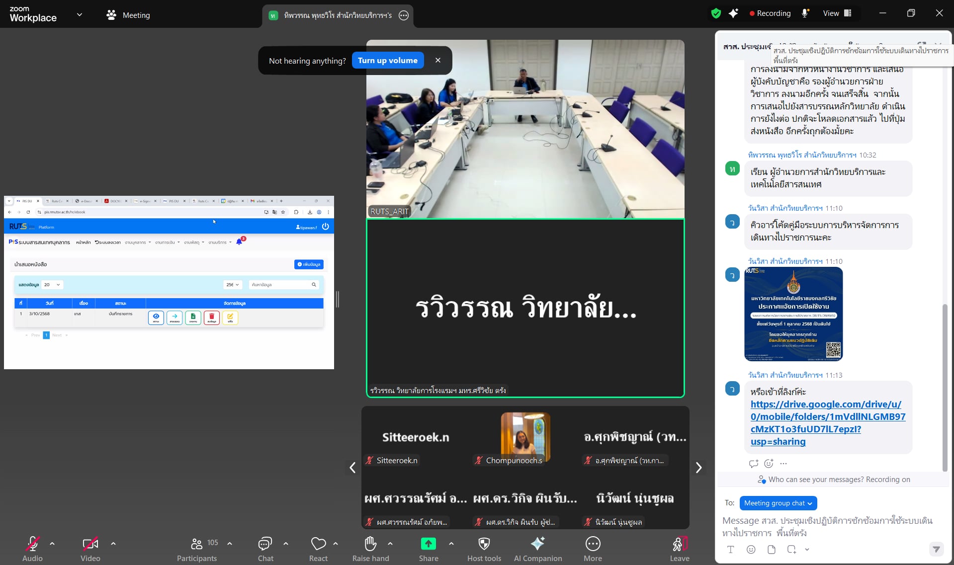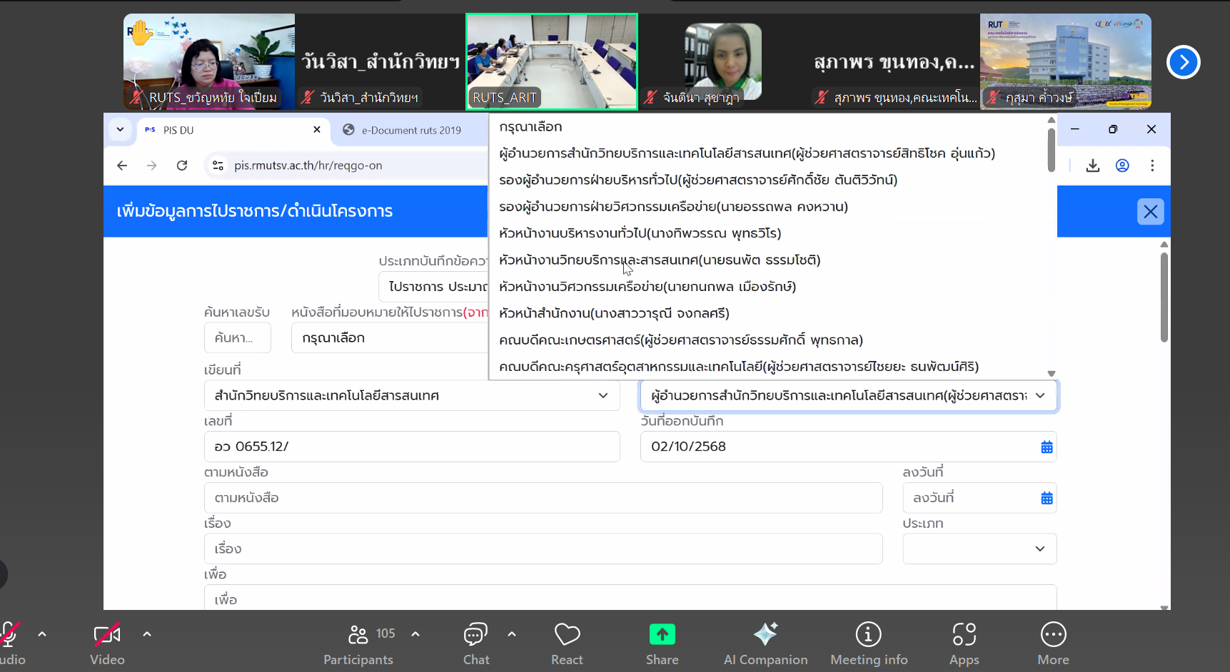 ทั้งนี้ สำนักวิทยบริการและเทคโนโลยีสารสนเทศ ขอขอบคุณทุกท่านที่เข้าร่วมการประชุมและมอบข้อเสนอแนะอันมีคุณค่า เพื่อใช้เป็นแนวทางในการพัฒนาและปรับปรุงระบบการบริหารจัดการการเดินทางไปราชการ (RUTS OMAMS) ให้มีความสมบูรณ์และตอบสนองการใช้งานของบุคลากรในมหาวิทยาลัยได้อย่างมีประสิทธิภาพสูงสุด