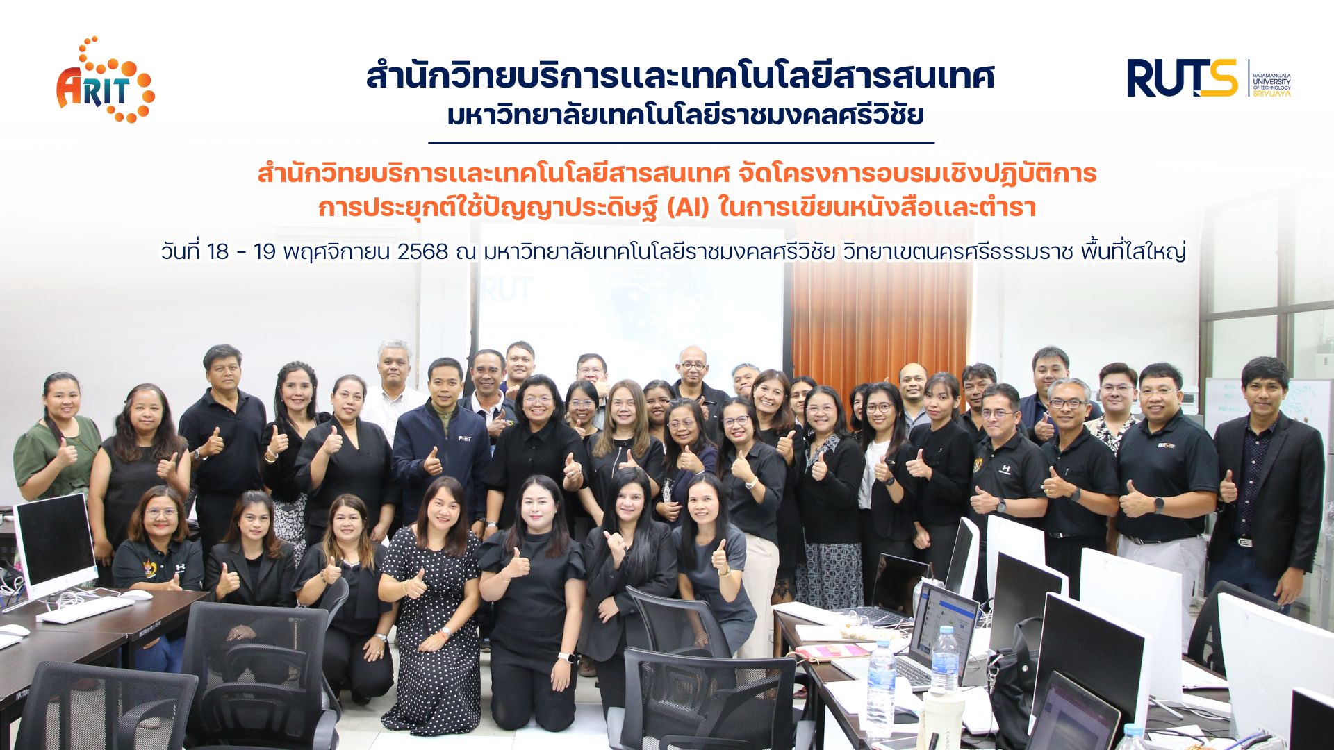 วันที่ 18 – 19 พฤศจิกายน 2568 เวลา 08.30 – 16.30 น. สำนักวิทยบริการเเละเทคโนโลยีสารสนเทศ จัดโครงการอบรมเชิงปฏิบัติการการประยุกต์ใช้ปัญญาประดิษฐ์ (AI) ในการเขียนหนังสือและตำรา (รุ่นที่ 2)