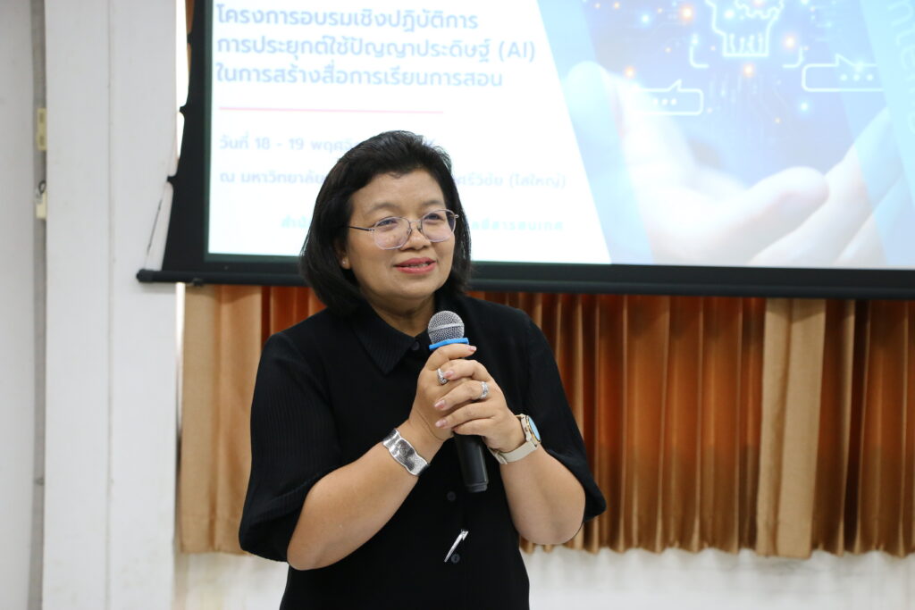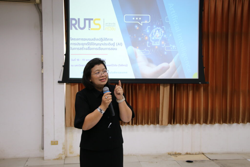 ซึ่งได้รับเกียรติจาก ผศ.ดร.ขวัญหทัย ใจเปี่ยม รองอธิการบดีประจำวิทยาเขตนครศรีธรรมราช เข้าร่วมเป็นประธานในพิธีเปิด เเละกล่าวรายงานโดย ผศ.ดร.ศักดิ์ชัย ตันติวิวัทน์ รองผู้อำนวยการฝ่ายบริหารงานทั่วไป โดยมีวิทยากร อาจารย์วิทูรย์ คงผล เป็นวิทยากรบรรยายให้ความรู้ เเละถ่ายทอดประสบการณ์และเทคนิคการใช้เครื่องมือ AI ในการจัดทำหนังสือและตำราอย่างมีประสิทธิภาพ โดยมีผู้เข้าร่วมอบรมประกอบด้วยคณาจารย์และบุคลากรจากหลากหลายคณะภายในมหาวิทยาลัย