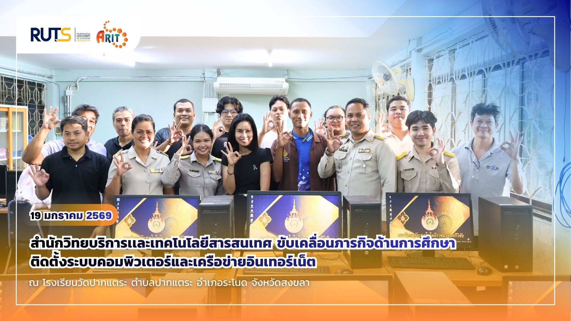 วันที่ 19 มกราคม พ.ศ. 2569 เวลา 15.00 – 17.30 น. สำนักวิทยบริการและเทคโนโลยีสารสนเทศ ได้รับการสั่งการจากท่านอธิการบดี ศาสตราจารย์ ดร. สุวัจน์ ธัญรส ท่านรองอธิการบดี ผศ. อุดร นามเสน รองอธิการบดี รวมถึงท่านรองอธิการบดี ผศ. ปิยะ ประสงค์จันทร์ รองอธิการบดีให้ดำเนินการนำเครื่องคอมพิวเตอร์ที่ได้รับการบริจาคจากคณะวิศวกรรมศาสตร์ ไปติดตั้งเพื่อใช้ในการจัดการเรียนการสอนให้แก่สถานศึกษาในพื้นที่
