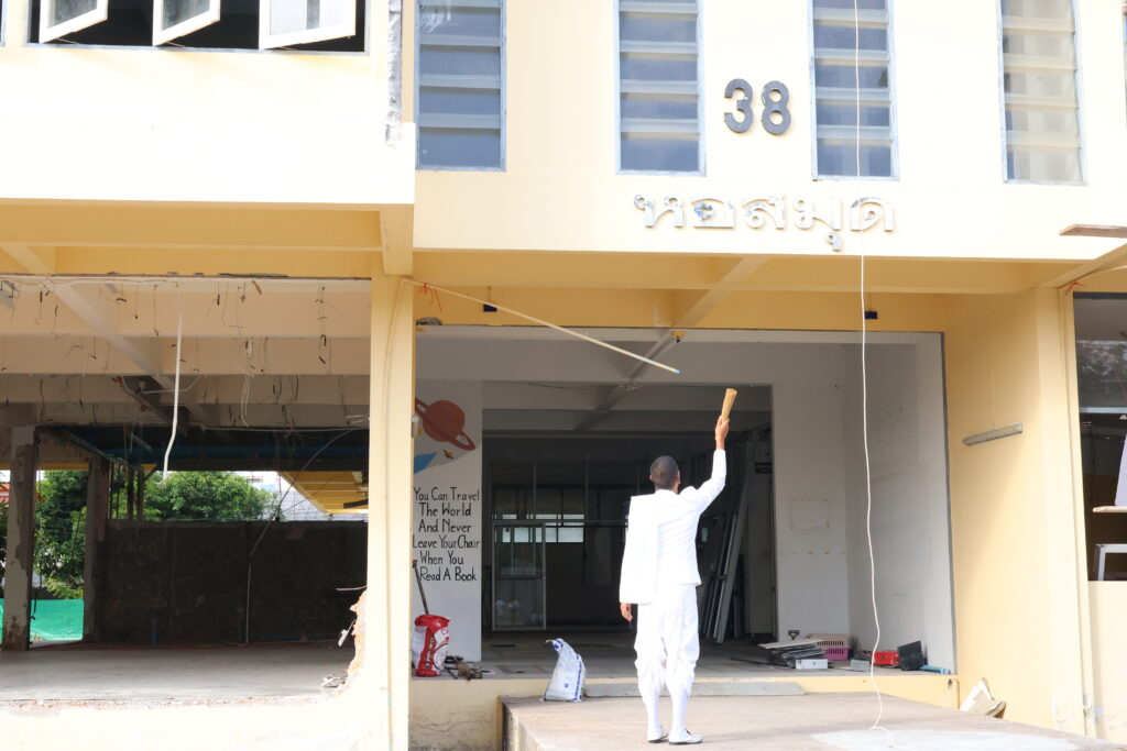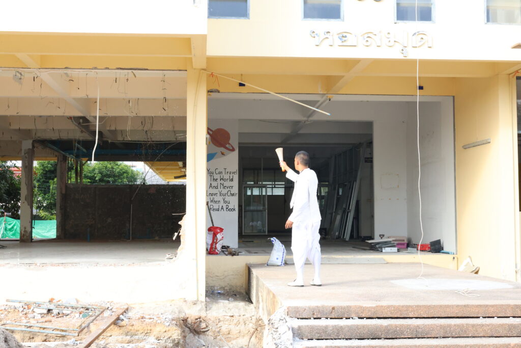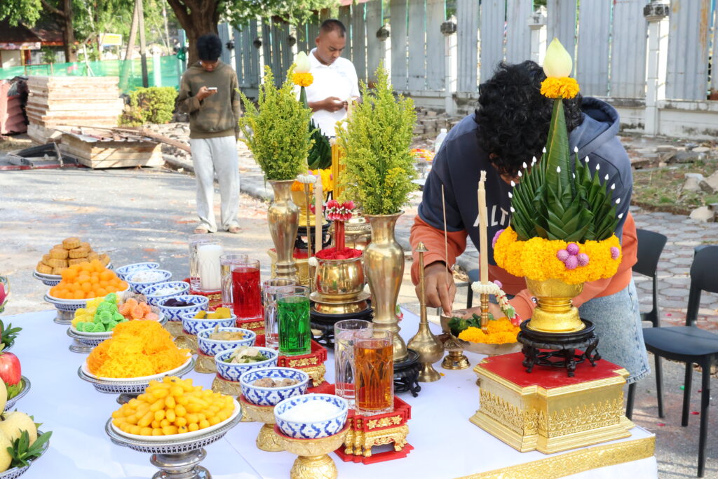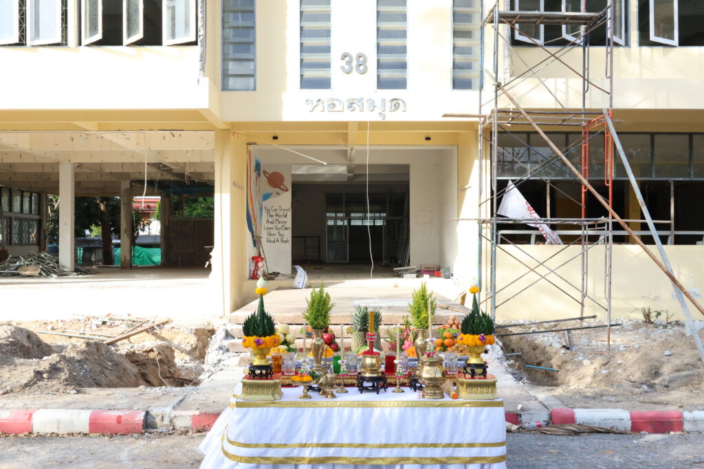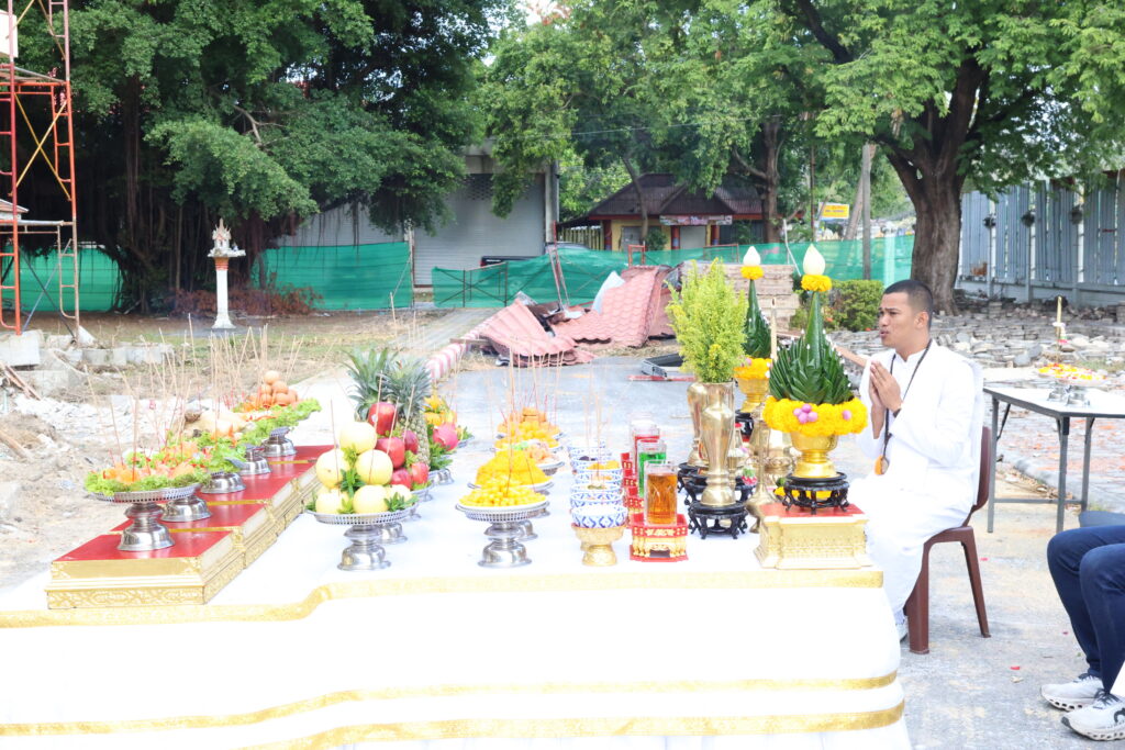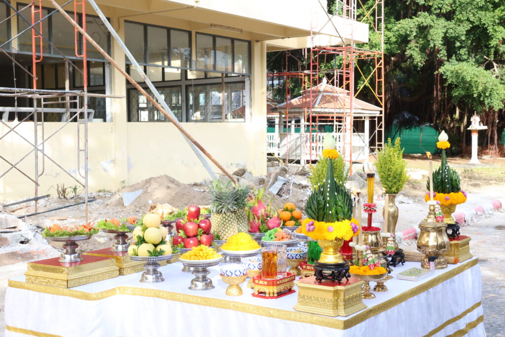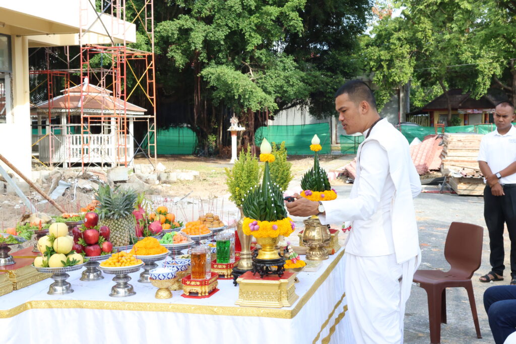 พิธีดังกล่าวดำเนินไปตามลำดับพิธีอย่างเหมาะสม มีการจัดเครื่องสักการะและประกอบพิธีตามประเพณี เพื่อขออนุญาตและขอพรให้การดำเนินงานด้านก่อสร้างเป็นไปอย่างปลอดภัย ทั้งต่อผู้ปฏิบัติงานและผู้ที่เกี่ยวข้อง โดยมีบุคลากรสำนักวิทยบริการฯ กองนโยบายเเละเเผน งานออกเเบบเเละพัฒนาอาคารสถานที่ เข้าร่วมพิธีฯ พร้อมด้วยผู้แทนจากบริษัทก่อสร้าง และณ บริเวณอาคาร 38 หอสมุด มทร.ศรีวิชัย