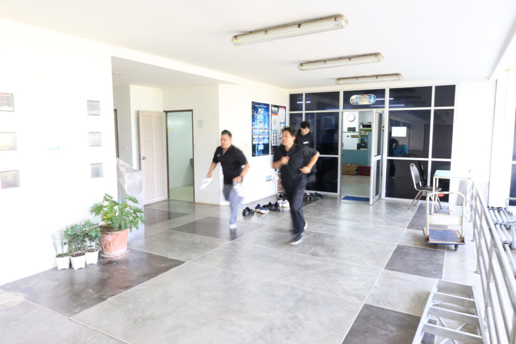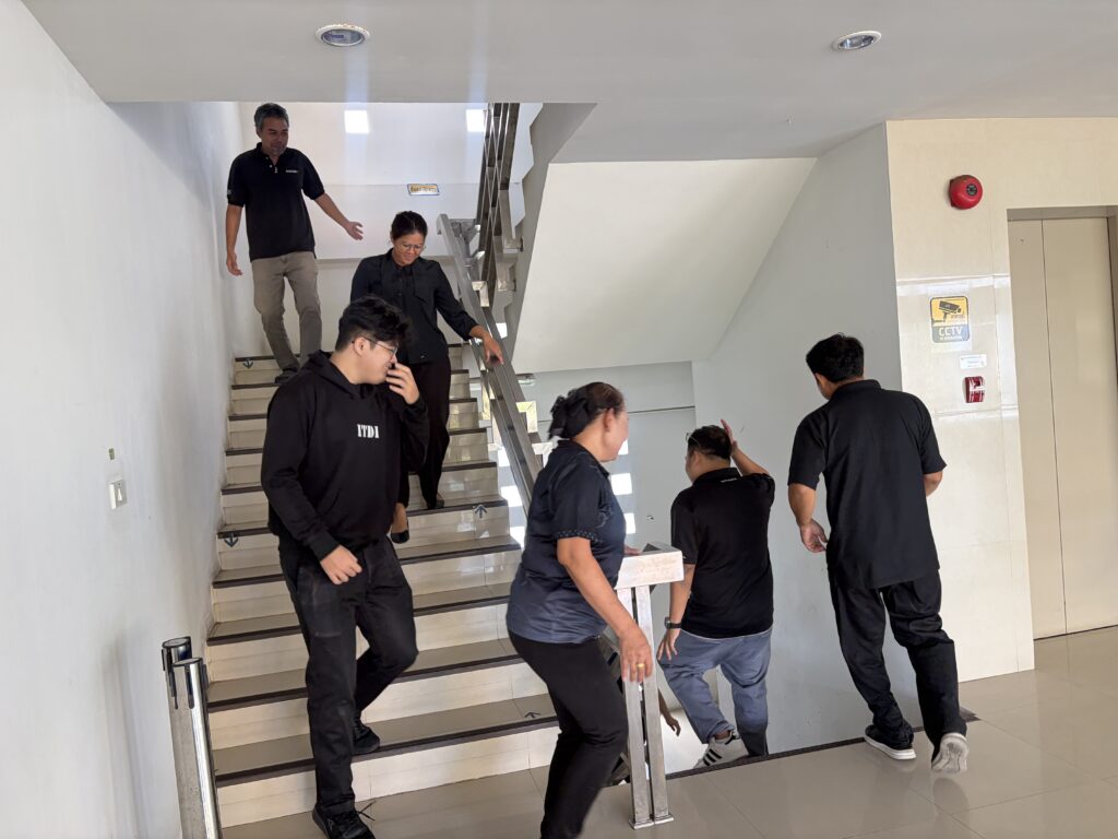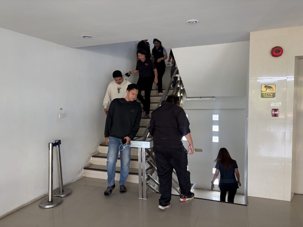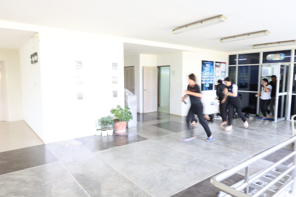 การซักซ้อมในครั้งนี้ได้จำลองสถานการณ์การเกิดเพลิงไหม้บริเวณชั้น 3 ห้องฝ่ายวิศวกรรมเครือข่าย โดยมีการทดสอบการใช้งานถังดับเพลิง การส่งสัญญาณฉุกเฉินเพื่อแจ้งเตือนบุคลากรภายในอาคารให้อพยพหนีไฟ และเคลื่อนย้ายไปยังจุดรวมพล พร้อมทั้งจำลองขั้นตอนการโทรแจ้งเหตุฉุกเฉิน เเละนับจำนวนบุคลากรที่ปลอดภัย ให้เป็นไปตามแผนอย่างถูกต้อง