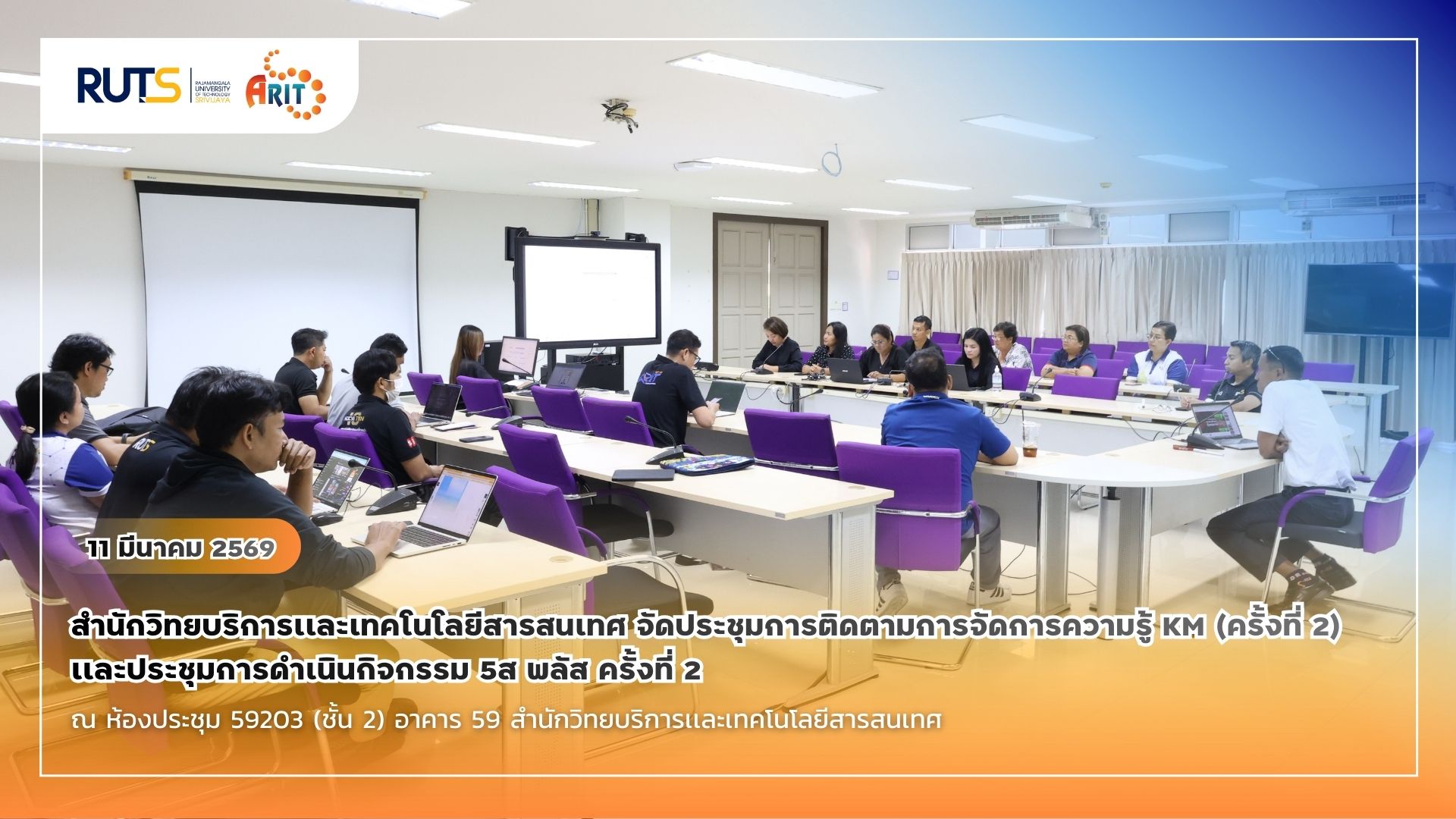 วันที่ 11 มี.ค. 2569 สำนักวิทยบริการเเละเทคโนโลยีสารสนเทศ จัดประชุมติดตามการจัดการความรู้ KM ครั้งที่ 2 เเละประชุมการดำเนินกิจกรรม 5ส พลัส ครั้งที่ 2