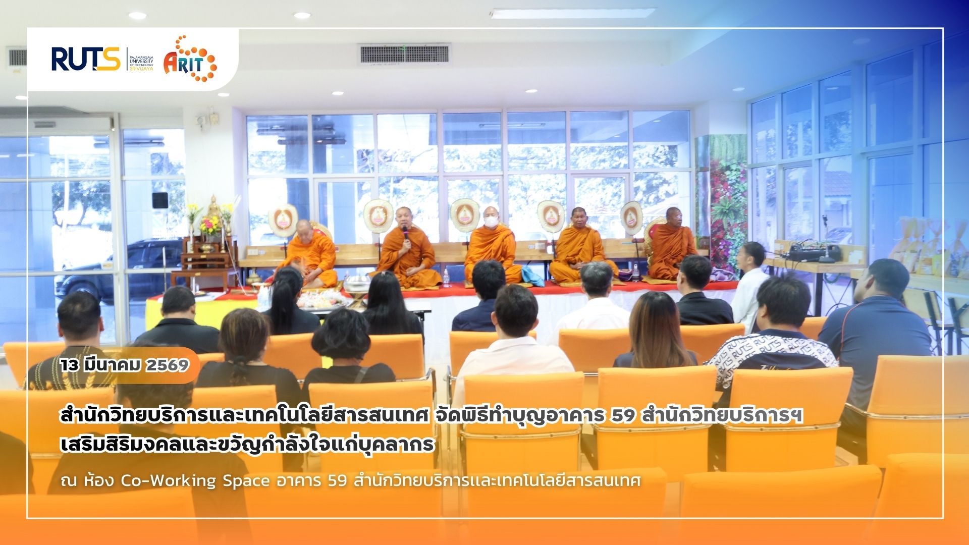 วันที่ 13 มี.ค 2569 เวลา 09.30 น. สำนักวิทยบริการเเละเทคโนโลยีสารสนเทศ จัดพิธีทำบุญอาคาร 59 สำนักวิทยบริการฯ เสริมสิริมงคลและขวัญกำลังใจแก่บุคลากร