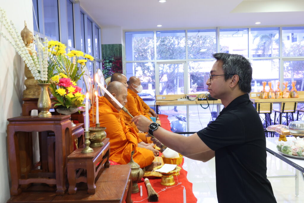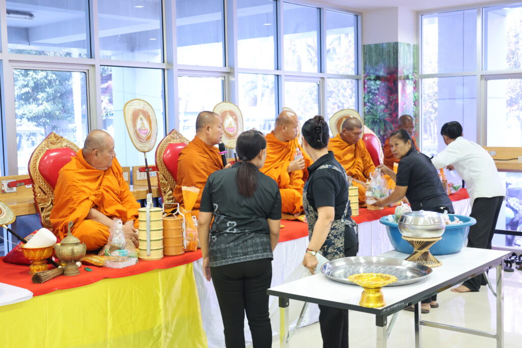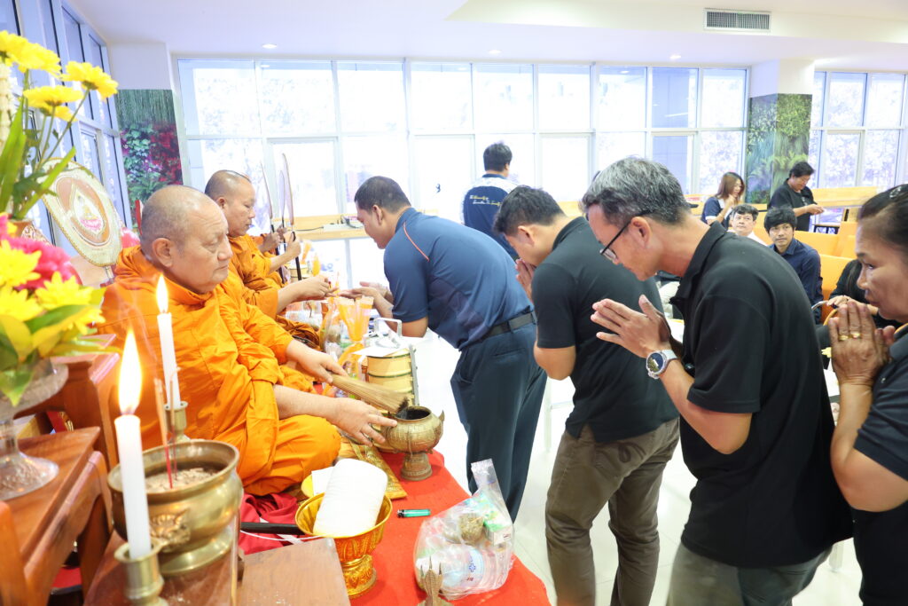 ภายในพิธีได้มีการนิมนต์พระสงฆ์ประกอบพิธีเจริญพระพุทธมนต์ ตักบาตร เพื่อความเป็นสิริมงคลแก่สถานที่และผู้ปฏิบัติงาน ตลอดจนเพื่อความเจริญรุ่งเรืองของหน่วยงานและองค์กร โดยบรรยากาศเป็นไปอย่างเรียบง่าย