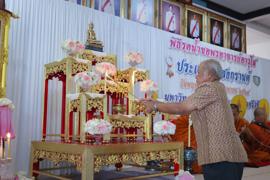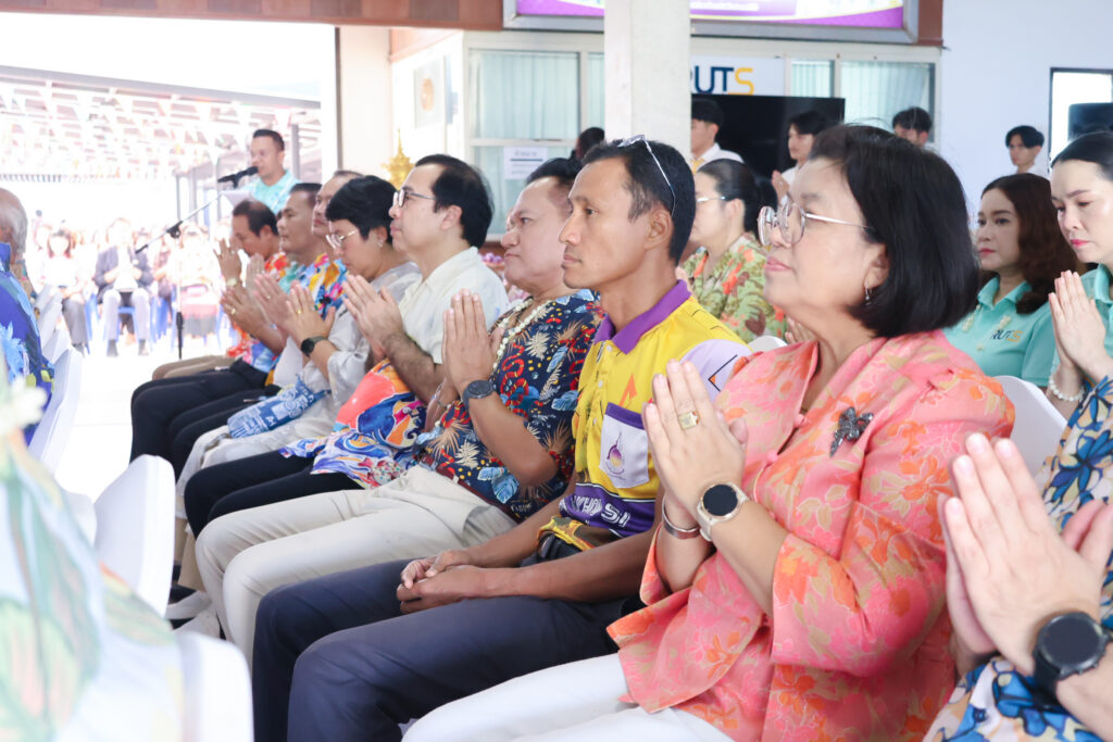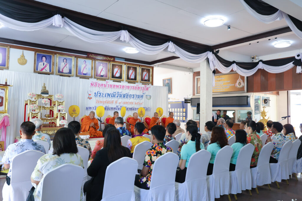 ภายในงานมีกิจกรรมที่สะท้อนถึงคุณค่าทางวัฒนธรรมและความเป็นสิริมงคลอย่างพร้อมเพรียง โดยในช่วงเช้า ผู้บริหาร บุคลากร และนักศึกษา ได้ร่วมประกอบพิธีทางศาสนา เพื่อความเป็นสิริมงคลแก่ตนเองและหน่วยงาน ประกอบด้วยพิธีทอดผ้าไตรบังสุกุล และถวายเครื่องไทยธรรมแด่พระสงฆ์ ท่ามกลางบรรยากาศแห่งความสงบ เรียบง่าย และเปี่ยมด้วยศรัทธา