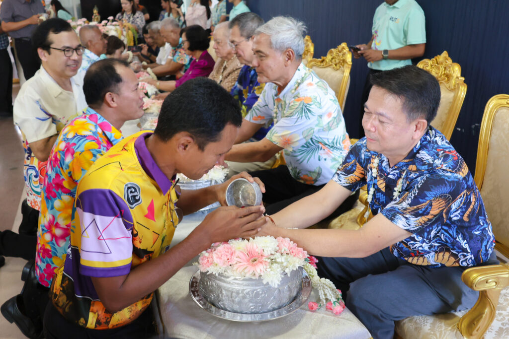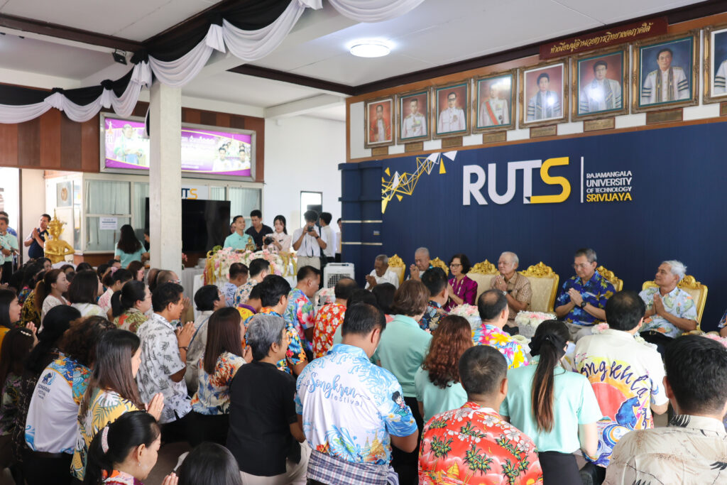จากนั้นเป็นพิธีสรงน้ำพระพุทธรูปและรดน้ำขอพรอาจารย์อาวุโส ซึ่งสมาชิกชาวมหาวิทยาลัยเทคโนโลยีราชมงคลศรีวิชัยได้พร้อมใจกันเข้าร่วม เพื่อแสดงออกถึงความเคารพ ความกตัญญูกตเวที และความสำนึกในพระคุณของคณาจารย์ผู้มีบทบาทสำคัญในการวางรากฐานทางการศึกษาและการพัฒนามหาวิทยาลัยมาอย่างต่อเนื่อง