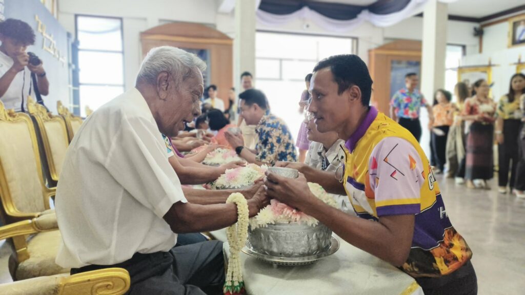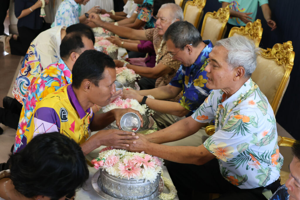 ผู้ช่วยศาสตราจารย์สิทธิโชค อุ่นแก้ว ผู้อำนวยการสำนักวิทยบริการและเทคโนโลยีสารสนเทศ มอบหมายให้บุคลากรสำนักวิทยบริการและเทคโนโลยีสารสนเทศ เข้าร่วมโครงการสืบสานประเพณีสงกรานต์และรดน้ำขอพรอาจารย์อาวุโส ประจำปี 2569 เพื่อร่วมสืบสาน อนุรักษ์ และธำรงไว้ซึ่งประเพณีอันดีงามของไทย ตลอดจนเสริมสร้างความรัก ความสามัคคี และความสัมพันธ์อันดีระหว่างผู้บริหาร คณาจารย์ บุคลากร เเละนักศึกษา