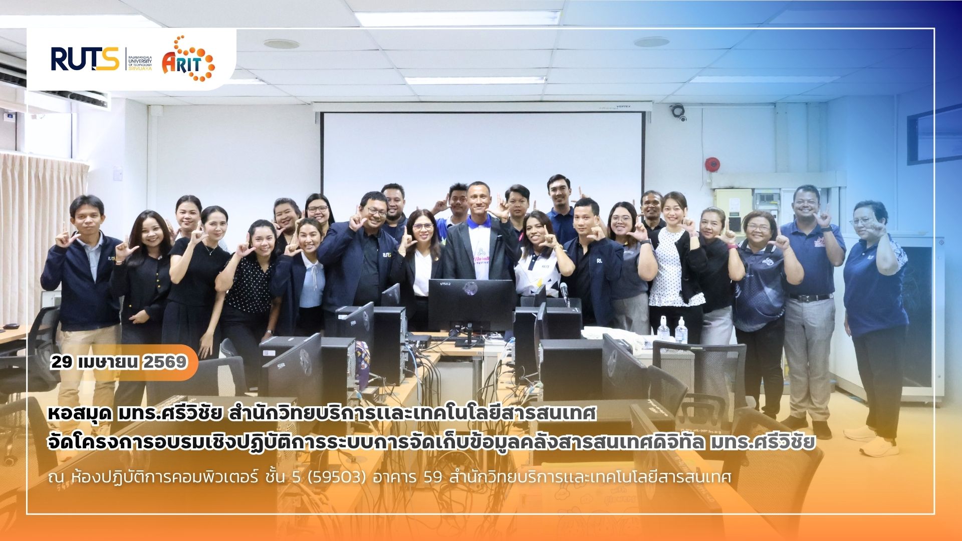 วันที่ 29 เมษายน 2569 เวลา 09.00 – 16.30 น. หอสมุด มทร.ศรีวิชัย จัดโครงการอบรมเชิงปฏิบัติการระบบการจัดเก็บข้อมูลคลังสารสนเทศดิจิทัล มทร.ศรีวิชัย ณ ห้องปฏิบัติการคอมพิวเตอร์ ชั้น 5 อาคาร 59 สำนักวิทยบริการฯ